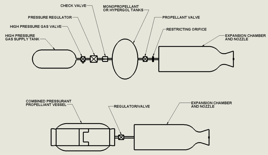 - A combined pressurant/propellant tank would alleviate needs for pumps, anti-sloshing devices and plumbing.